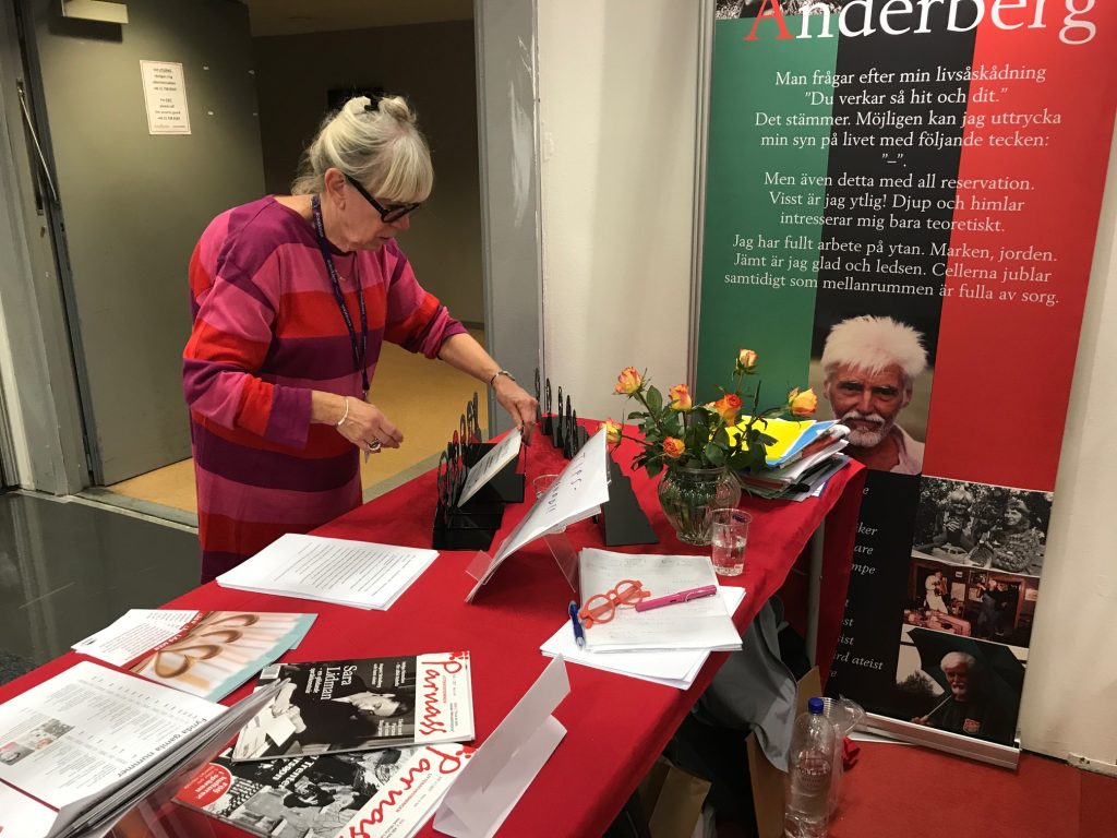 På torsdagskvällen bjöd DELS och Litteraturbanken in till mingel i montern för de litterära sällskapens scen. Det blev mycket uppskattat och många kontakter knöts.